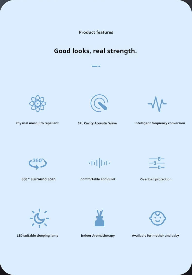 This 5-in-1 wireless charging bedside clock combines everything you need for better sleep and a clutter‑free nightstand. It wirelessly charges your Qi‑compatible phone (up to 10W) while you sleep. The sunrise alarm clock gently wakes you with a gradually brightening light, and you can choose from 7 white noise sounds (ocean, rain, fan, etc.) with a built‑in sleep timer (30/60/90/120 min). A warm, dimmable night light soothes you to bed, while the integrated aromatherapy pad lets you diffuse essential oils. Plus, the gentle fan‑assisted repellent helps keep mosquitoes away — all in one compact, silent, and energy‑efficient device perfect for bedrooms, nurseries, or travel.